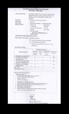 Edy, Dwi Kurniati (2019) Sustainable Competitive Advantage of SMEs through Resource and Institutional-Based Management: An Empirical Study of Batik SMEs in Central Java, Indonesia. Market-Trziste, 31 (1). ISSN 0353-4790