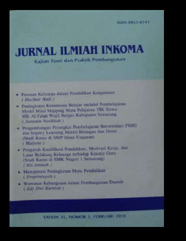 Edy, Dwi Kurniati (2010) WAWASAN KEBANGSAAN DALAM PEMBANGUNAN DAERAH. Kajian Teori dan Praktik Pembangunan, 21 (1). pp. 75-80. ISSN 0852-6141