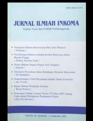 Edy, Dwi Kurniati (2009) PENERAPAN UNDANG-UNDANG NOMOR 39 TAHUN 2007 TENTANG CUKAI DALAM PENINGKATAN PENDAPATAN NEGARA. Jurnal Ilmiah Inkoma, 20 (1). pp. 77-86. ISSN 0852-6141